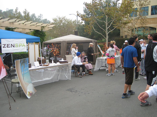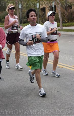 On Friday night, Irving and I left Los Angeles at 11:30pm to drive up to San Francisco. We got into the city at 4:30am. We took a nap till about 9:30am and then I took the subway into the city to visit the Race Expo. Those of you who run know that this is the best part of marathon weekend! I got my goody bag, chip and bib, and then I set out to get all the fun freebies (luna bars, ghiaradelli chocolate, postcards, chapsticks…). I also had my nails painted at the “Jet Blue Manicure Station”. And after that, they gave us cute little beauty kits with an eye mask and stuff! I love being a girl.