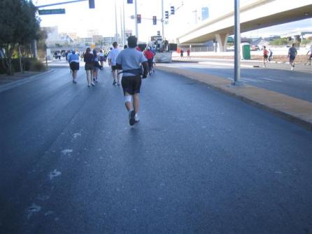 The first mile always starts off walking because there’s so many people you don’t get very far. It takes a few miles to thin out. There were a few brave souls cheering us on in the dark. I ran for the first mile and half straight and I felt great, but I knew I had to slow down if I wanted to make it the whole way.