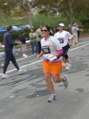 Somewhere over there, in the residential area, they had orange slices for the runners. IT’S LIKE CANDY!! I love oranges when I run. MMMmmmm… OMG it was so good. hahaha. Then it was all downhill for a mile or so, and I ran the whole way without stopping. My knees were screaming at me, but I told them to shut-up.