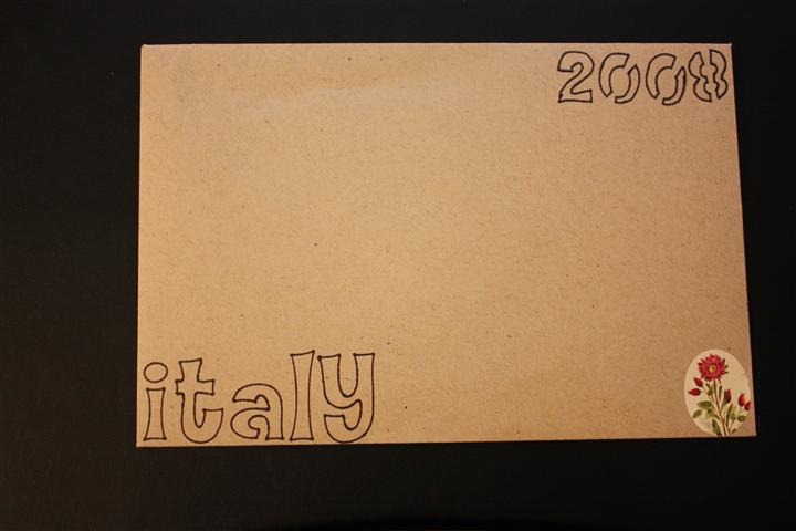 I hated it. Especially the way the year looks at the top. Nothing popped. And duh! If these envelopes were upright in a box, I couldn’t read the label! I had to put the country at the TOP of the envelope. I’ll chalk that one up as “practice”. Let’s start over. This time, in pencil first! ![]()