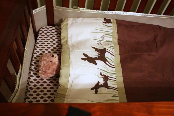 Irving decided that the baby’s teddy bear would be the most comfortable tucked into the crib.