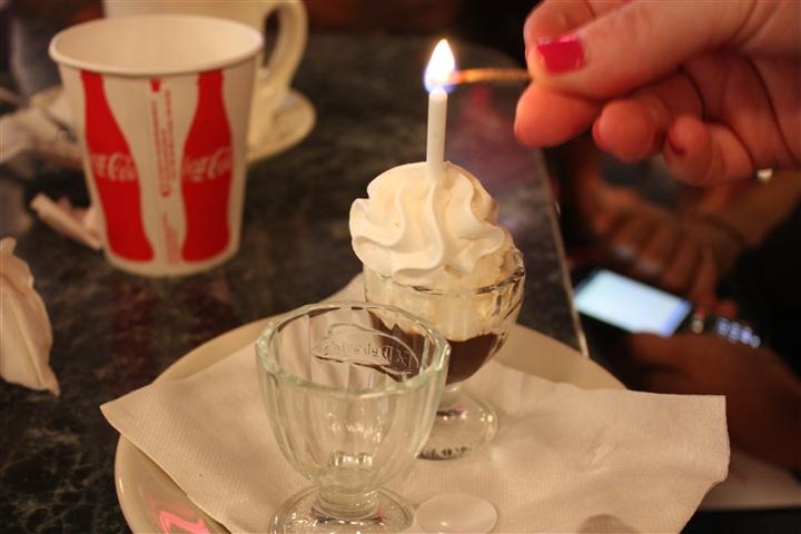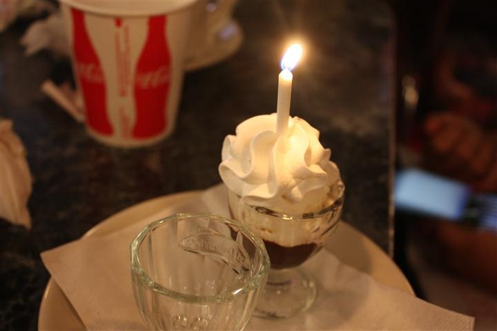 And somebody told them it was my birthday that weekend and they brought me over their signature “World’s Smallest Sundae” which was just as it seems! One bite of ice cream with whip cream and hot fudge in a tiny shot glass!
