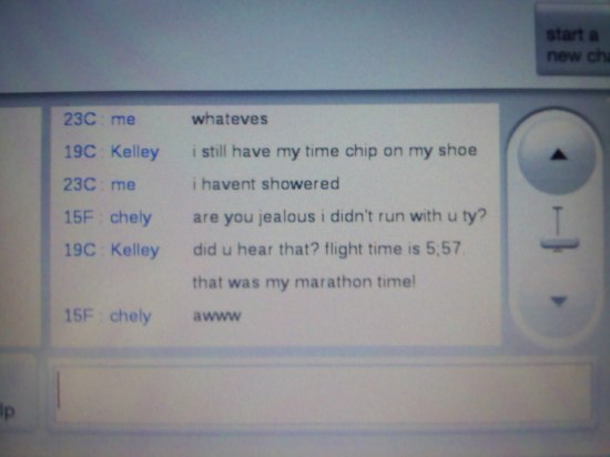 But did you see that? The flight time was 5:57! Same as my marathon time! Pretty cool huh? HAHA