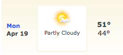 HAHA I just have to laugh at the Boston Weather… rain, clouds, sun… Finally it looks like it might clear up by race day!