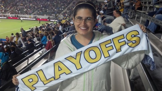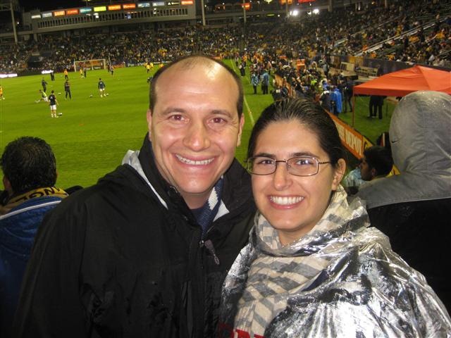 Sunday was POURING in LA. The rain came down in thick wet sheets. The kind of rain that has big droplets that soak you to the bone. On the way back to our car, we both stepped in a huge puddle and our socks and shoes were soaked. But we had to keep truckin’ because next up was the Major League Soccer Championship game! We got tickets months ago before we even knew which teams would be playing. Luckily our LA Galaxy made it in and we were excited to be in the stadium. Our seats were not covered and we spent four hours outside looking like this:
