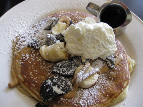 Saturday morning, we met up with Erica for breakfast and a walk. Here’s a preview of the Banana Peanut Butter Crunch pancakes we all split for “dessert”. (Yep, those are Oreos on there).