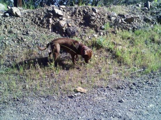 On Day 2, we woke up when the sun came out, and we packed up our tent, filled up our water bottles. We were just about ready to start our 30 mile hike across the island, when we realized our homemade gorp had been infested with ants. Ew. Well I guess we’d just have to hike without peanuts and M&Ms. I was pretty bummed. We decided we’d take the “Hermit Gulch Trail” instead of using the fire roads. It was so hard, it was a 10% grade uphill climb. It was close to 90 degrees, no shade, and just no break. It kept going up and up. As we climbed, the views were getting better and better though. It was really amazing. I was a little nervous because the island has hundreds of rattle snakes. Everyone says they keep off the trails, but I was watching every step I took.