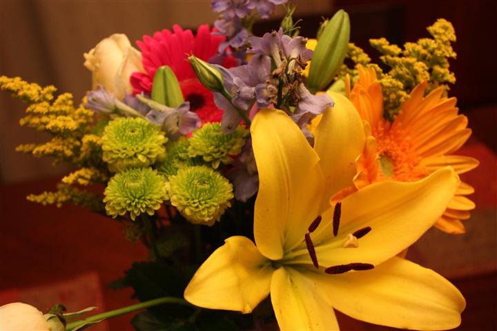 In other news, I am in love with the flowers Irving bought me for our anniversary this week! I love buttom mums. I had them in my wedding bouquet. So summery!![]()