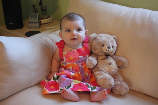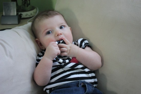She’s super active and has a very healthy appetite. But she’s caught three colds in the past two months. It doesn’t seem to bother her too much, but it’s so sad to hear her all stuffed up. I’m hoping that these little colds just mean her immune system will be solid once she gets older. They only last 3-4 days but I don’t like to see my baby suffer. We just give her extra cuddles and leave a humidifier on in her room and that seems to do the trick.