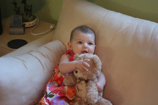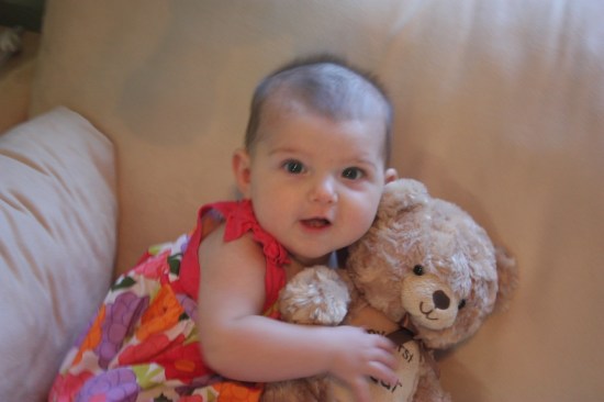 She loves her teddy too. Pretty much anything with soft parts she can put in her mouth makes her happy.