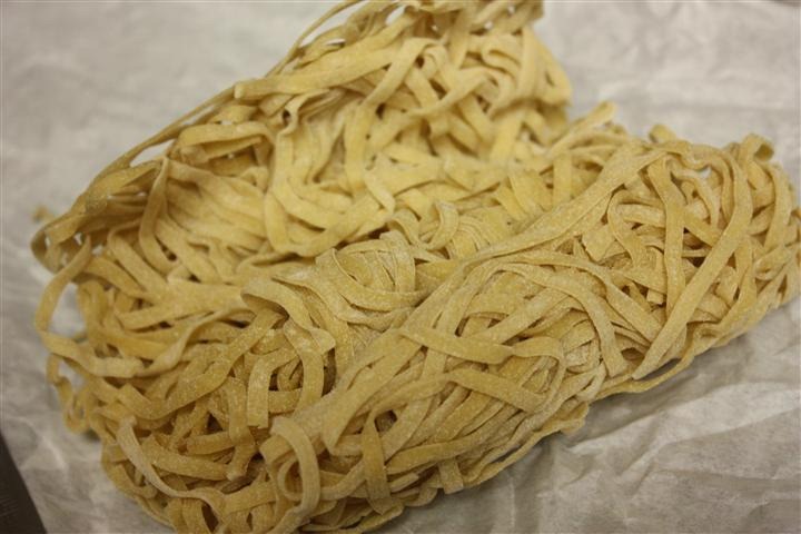 We had good old fashioned fettuccini! (This was the refrigerated kind, not the box kind, so that makes it more gourmet, no?)