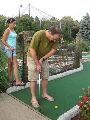 When it got dark, my mom and I took a walk on the beach and Mikaela, Chris and Irving went off to play mini-golf up the street. (Yep, twice in a week, it’s crazy!) After a couple of hours, my mom and I went to investigate to see how they were doing. We caught them deep into a very serious golf game.