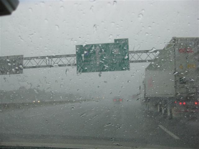 Of course as soon as we got on the road to get up there, it started to pour! We were really hoping it would clear up by the time we got up there, the rain was coming down in sheets! Typical New England, right?