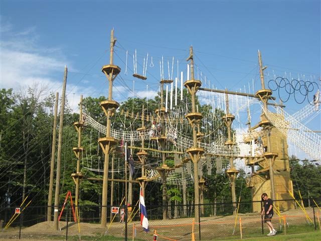 Around dinner time, my mom, sister and her boyfriend joined us at the lake too! We headed out to dinner up the road. Along the way, we stopped to look at the new “Monkey Trunks” playground they built nearby. Isn’t it cool? It’s a bunch of ziplines and high ropes and obstacle courses! It’s on my list of things to do for next time!